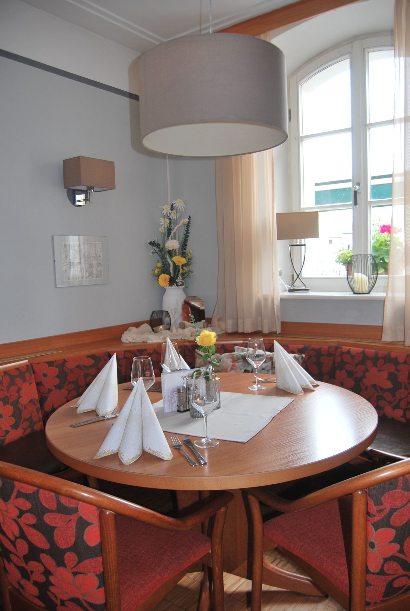 Unser Gastraum lädt mit warmem Licht und gemütlichem Ambiente zum Verweilen ein. Bei schönem Wetter genießen Sie Ihr Essen auf unserer Terrasse mit direktem Blick zum Marktplatz.